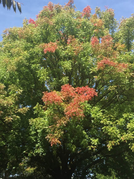 Some trees around town are already beginning to display their annual fall brilliance, like this one by our office.