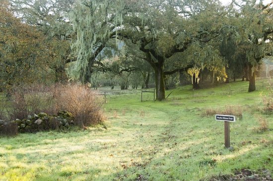 Glen Oaks Ranch is a diverse property with historic infrastructure and natural resources. About six years ago, Sonoma Land Trust enlisted the help of volunteers to maintain Glen Oaks’ 2.8 miles of hiking trails and perform other tasks as needed. It was lovely to, once again, host this group for our annual kickoff meeting at the ranch last Saturday. While I always enjoy working with the Trail Crew volunteers, this year was particularly fun — the group was comprised entirely of returning members! This meant that I could present a simplified program — and that everyone was already familiar with each other. Many of them hadn’t been in touch since the conclusion of the 2016 season. We gathered around coffee and pastries, exchanging news and laughter in the damp morning air. After covering the requisite safety information and logistics, the group split into smaller groups to tackle mowing, pruning and rock-lining of the hiking trails.