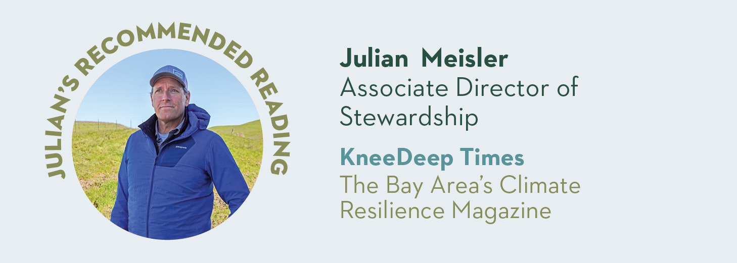 KneeDeep Times is a great Bay Area-focused digital magazine that covers climate resilience and nature-based solutions in the Bay Area. KneeDeep Times reports stories about how communities, scientists, planners, and local leaders are responding to climate impacts and using natural systems to adapt and build resilience. You can read it online here.