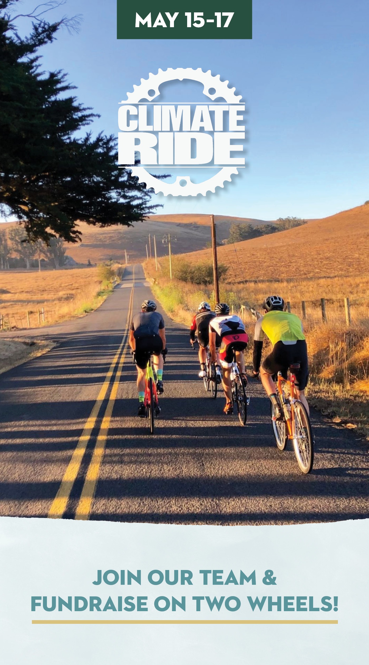 We invite you to join our cycling team in the Green Fondo Climate Ride on May 15-17, 2026. Registration is $75 if you take advantage of the subsidized registration offer before January 15th. The fundraising requirement for each participant is $250.