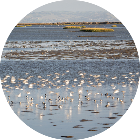 La subida del nivel del mar y el aumento de las tormentas amenazan con inundar permanentemente gran parte del litoral de la bahía de San Francisco, incluidos hábitats, infraestructuras de transporte de cercanías, empresas y viviendas. Las marismas actúan como esponjas, absorbiendo las oleadas de agua generadas por las mareas altas y las inundaciones, al tiempo que proporcionan hábitat a aves, pequeños mamíferos, peces y plantas. Restaurar las marismas puede aliviar los peores efectos de las inundaciones y proporcionar amortiguadores naturales contra la erosión del viento y las olas.