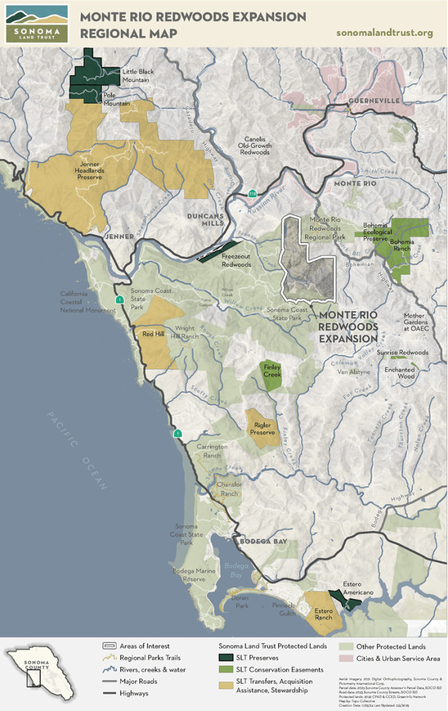 • Scenic & Recreational Value: Expands public access and trail networks, connecting Monte Rio Redwoods Regional Park to Sonoma Coast State Park.