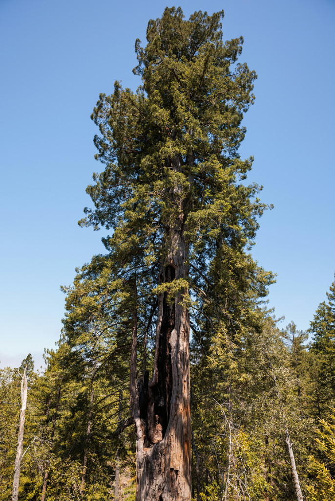 There are a few old-growth trees across the property, including one 14-foot-wide ancient tree with some large vertical, reiterated branches that provide habitat for other species and a natural tunnel through its base.