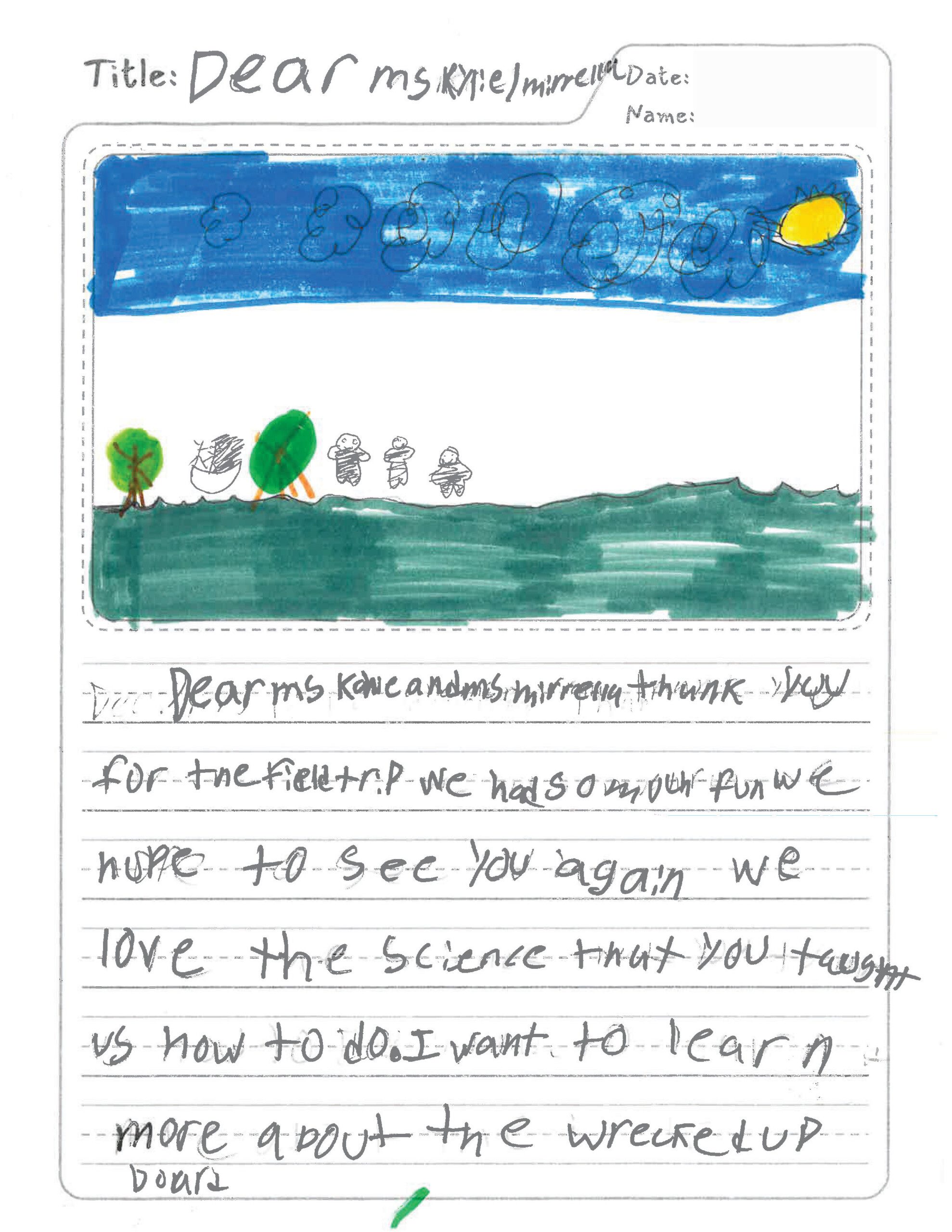One of the best parts of SLIME is the feedback we get from the elementary school students who participate. These letters offer a glimpse into the meaningful and memorable experiences of past field trip attendees.